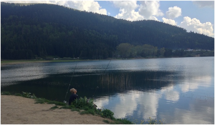 Gölün derinliği bazı yerlerde 18 metreyi buluyormuş ama geneli sığ ve sazlık. Çok fazla balık tutan kişi gördüm çevrede, alabalık çıkıyormuş. Bitki örtüsü olarak da genelde çam ve köknar ağaçları varmış.