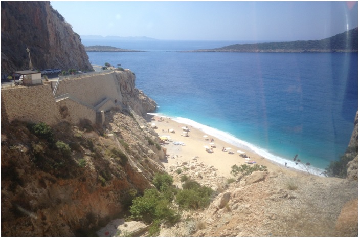 Bunlar dışında son seçenek de araba tabi. Yine de hangi yolu tercih ederseniz edin şunu bilin ki yolun son yarım saati ne yapın edin uyumayın. Çünkü Kalkan-Kaş arası olan yol bence dünyanın en güzel yoludur. Kıvrıla kıvrıla gider, yanı başınızda deniz. Ortalarda bir yerlerde meşhur Kaputaş Plajını görürsünüz, denizin turkuaz renginin güzelliğine hayran kalırsınız.
