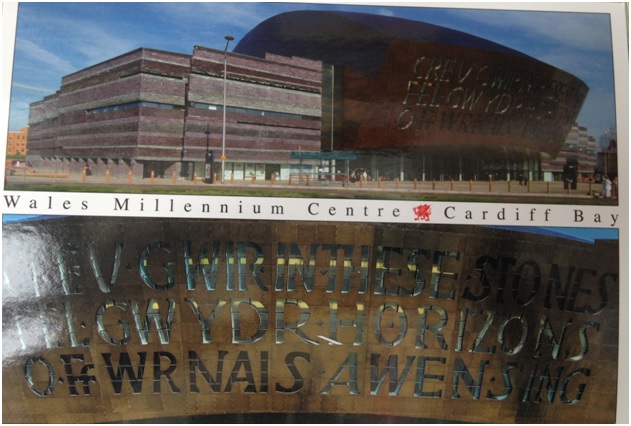 • Wales Millenium Center: Tourist Information Center da içinde. Ben güzel bir fotoğrafını çekemediğim için yukarıdaki kartpostal fotosunu koymak zorunda kaldım, idare ediverin Üzerinde yazan yazının ingilizcesi şu şekilde: Creating truth like glass through the furnica of inspiration