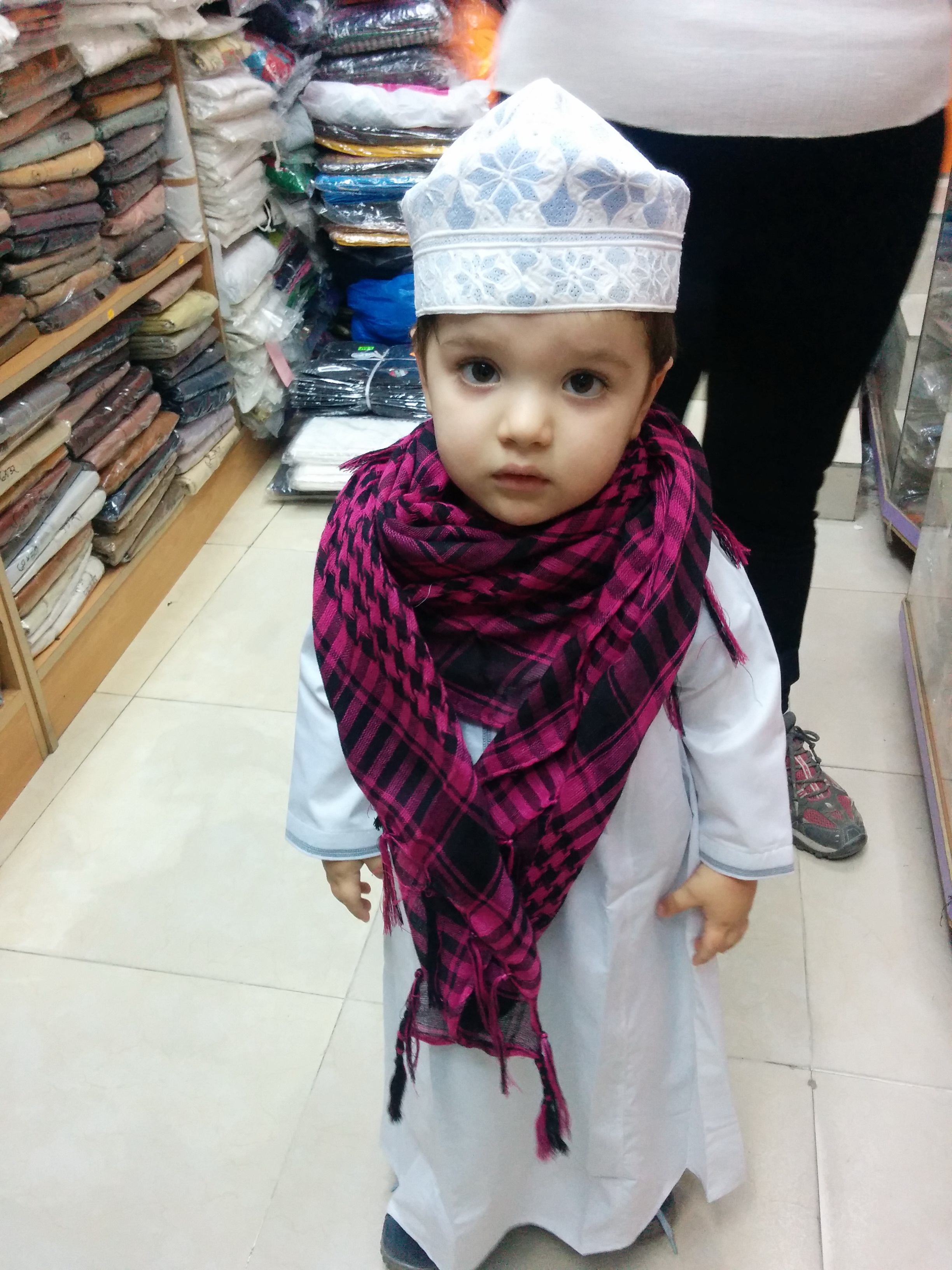 Elçilik bölgesinde daha çok expat insanlar göreceğimizi düşünsek de Muskat’ta en çok hoşuma giden şey şu oldu: Her nereye giderseniz gidin, expat lokal turist herkesi bir arada görebilme ihtimali. Zira sahil yolu boyu yaptığımız yürüyüşte de sık sık yerel giysileri içinde yürüyüş yapan, piknik yapan Ummanlılarla karşılaşmak hepimizi ama en çok da hiç bu kılıkta adam görmemiş Elvin’i çok eğlendirdi.