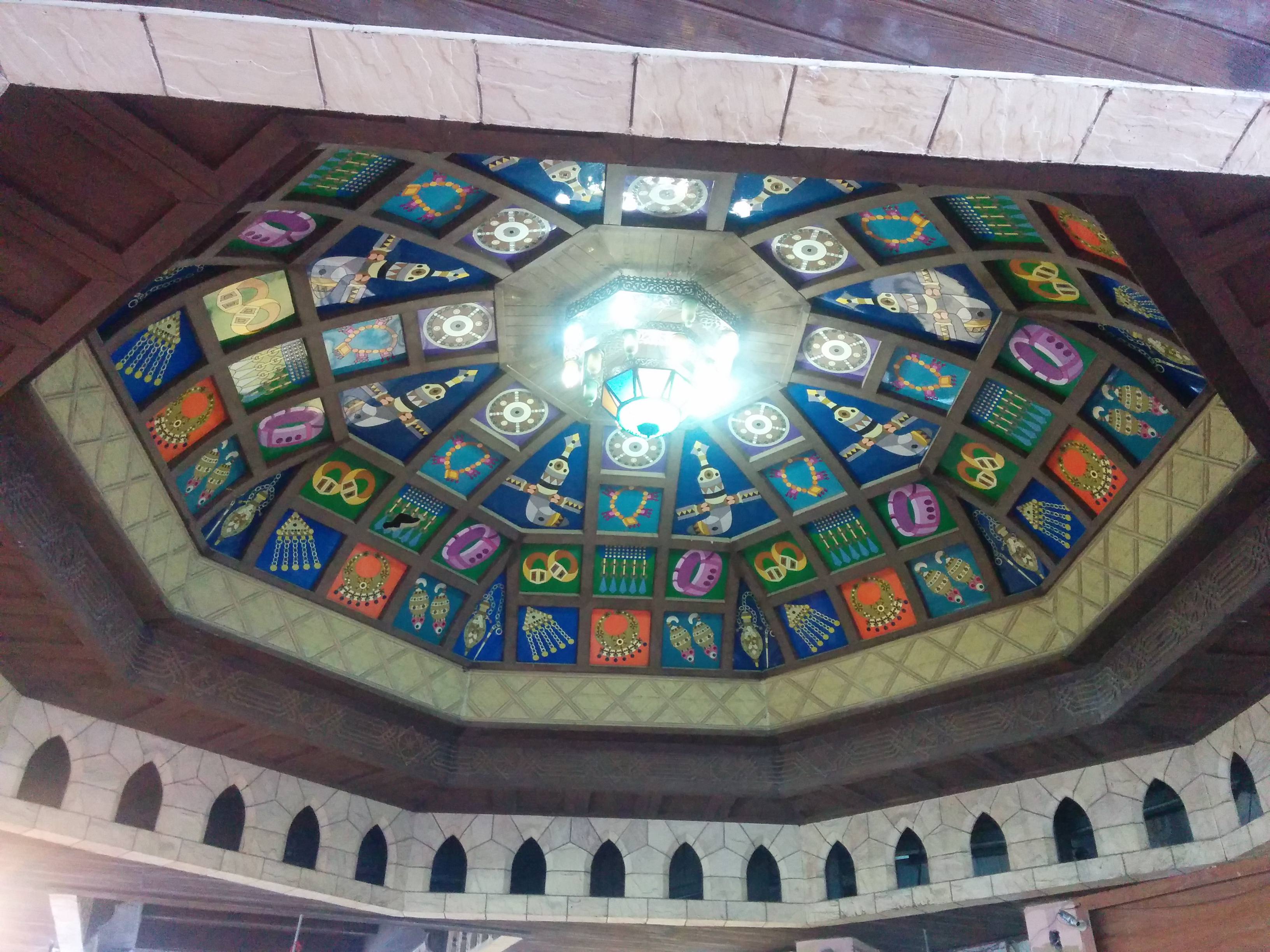 Gökkuşağı renkli süslemeler bana niyeyse Artvin Machael vadisi civarında ziyaret ettiğim dağ köylerindeki camilerin tavanlarını hatırlattı (Bakınız: Bir gezgin hastalığı olarak her gördüğü yeni yeri eskiden gördüğü başka bir yere benzetme 🙂 )