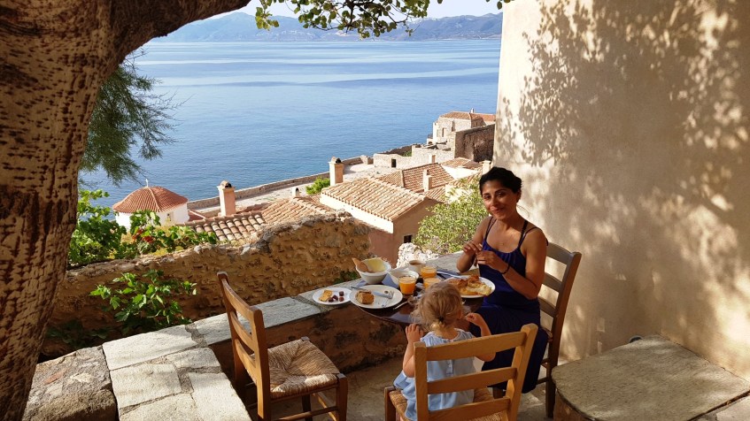 20160617_085948 Published Nisan 1, 2019 at 2560 × 1440 in Çocuklu ve Göbekli Yunanistan Tatili Manzaralı kahvaltımız