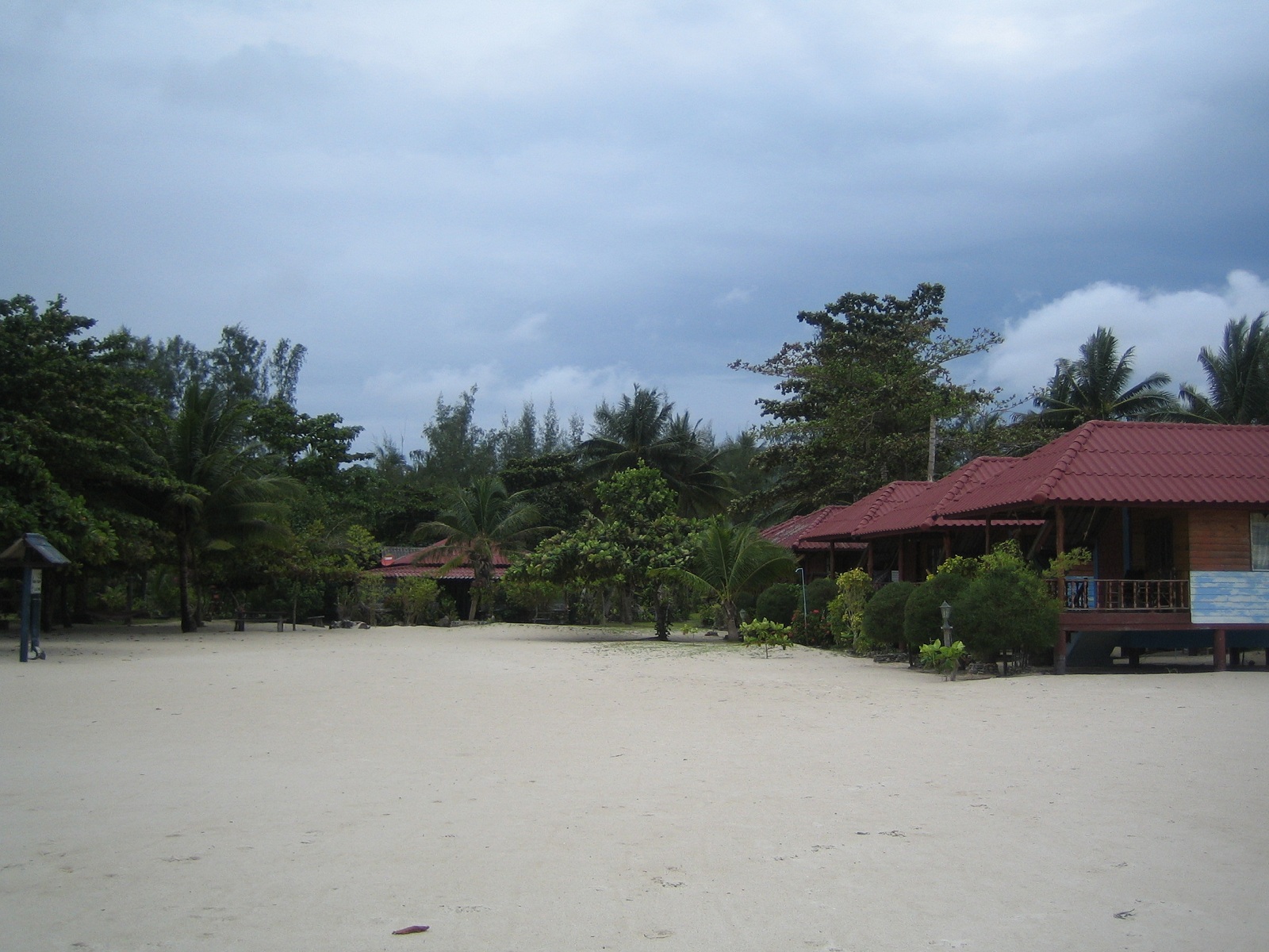 Kaldığım bungalov grubu olan Seaview Rainbow’un sahilden görünüşü
