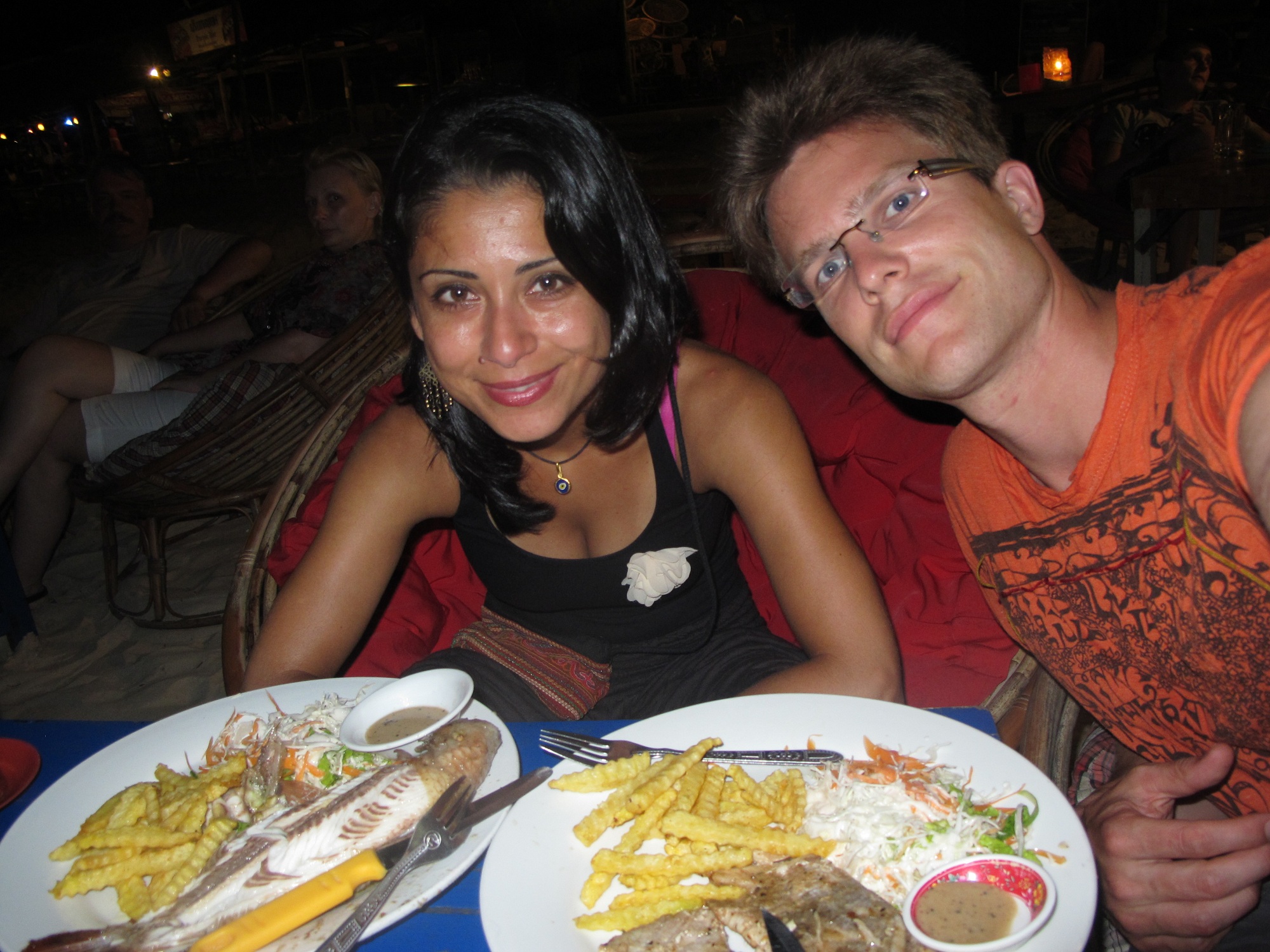 - İddia ediyorum, iyi bir arkadaşla seyahat, hele de bu arkadaş sevgili ya da eşse, insanı birazcık asosyal yapıyor. Til’le gezilerimizde sosyal bir çift olduğumuzu sanırdım üstelik. Diğer gezginlerle yapılan sohbetler, arada birlikte çıkılan turlar, bir iki akşam başka gezginlerle beraber yemeğe eğlenceye çıkmalar filan. Ama sonuçta insanı gerçekten kabuğundan çıkmaya, sosyal olmaya iten hatta zorlayan şey tek başına olmakmış. (“Tuvalete gideceğim, sırtçantama bakar mısın? “, “Tek başına bir bayan olarak burada kalmak güvenli mi?”den başlayıp gidiyor konuşma konuları 🙂 ) Diğer gezginlerle gerçekten arkadaşlık kurduğum tek seyahatim Koh Phangan oldu diyebilirim. Ha bir de, Koh Phangan’da motosiklet kullanmayı bilmeyen yalnız bir turist olmak da başlıbaşına sosyalleşme kaynağı. Koh Phangan’a gelen turistler (en azından benim kaldığım Sri Thanu ve Haad Rin civarındakiler) genelde batılı sırtçantalı gençler ya da yoga tutkunları. Çok rahat ve arkadaşça bir atmosfer esiyordu heryerde, sadece yerli halk değil turistler arasında da. Adanın ana caddelerinde ne zaman yalnız yürümeye çıksam ya da yoga okulu yollarındayken beni gideceğim yere ya da yakınına kadar bırakmayı teklif etmek için yanımda duraklayan bir motosikletli turist oluyordu mutlaka.