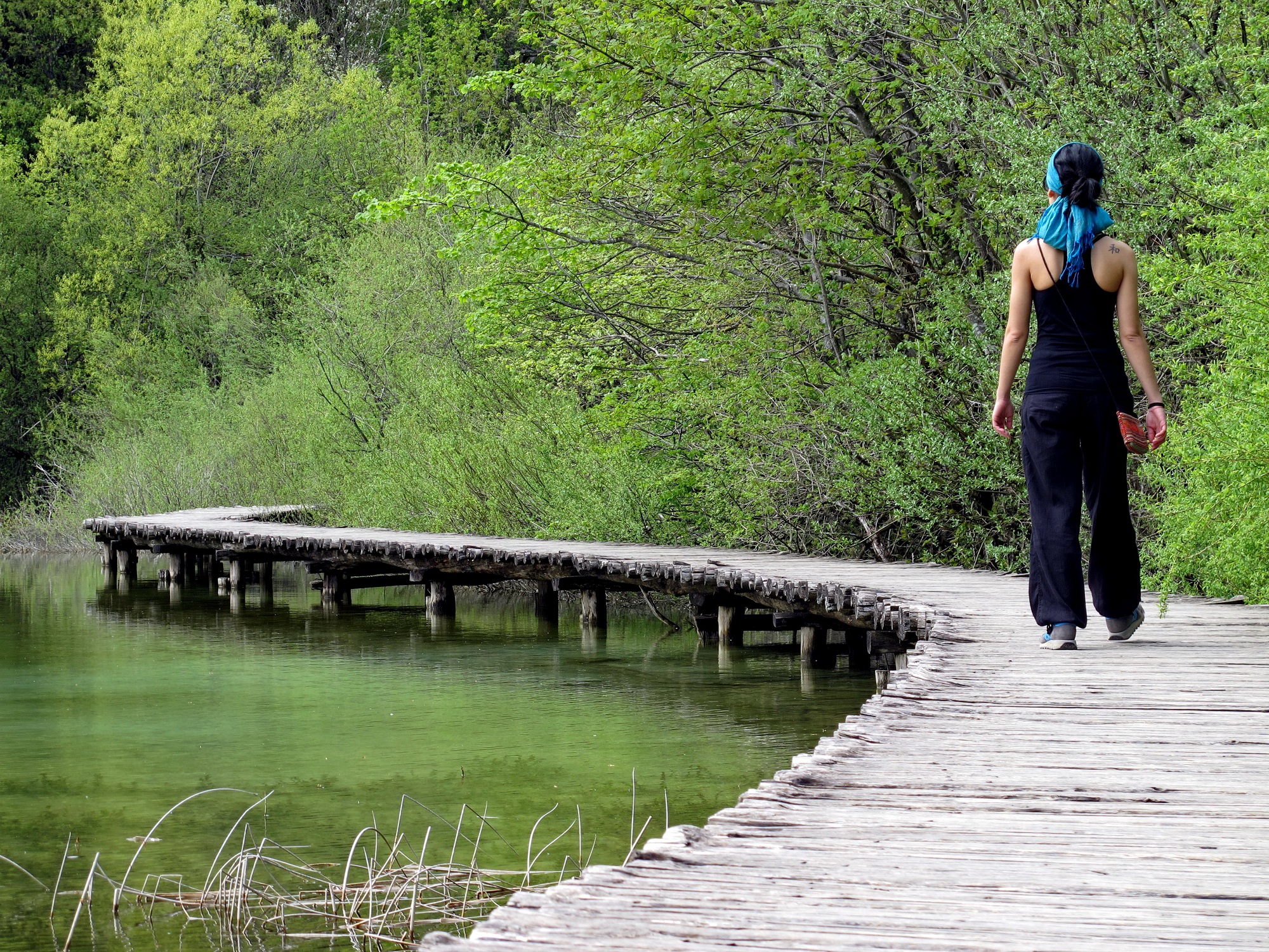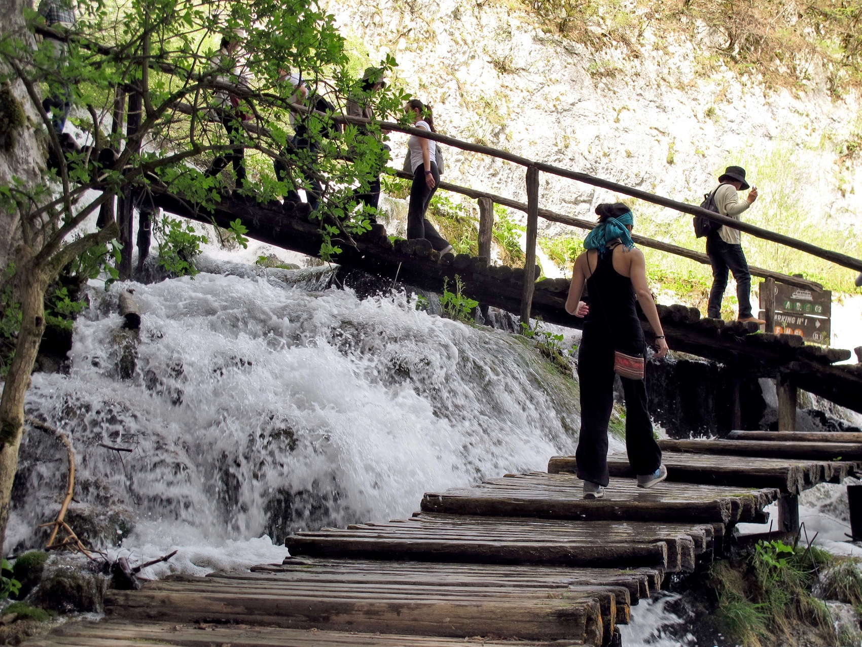 Biletleri aldığımiz gişenin hemen yanında bir danışma ve bilgi gişesi var, burada günübirlik ziyaret için en uygun ve güzel yürüyüş rotası hakkında bilgi ve tavsiye aldıktan sonra bir park otobüsüne binip 5 dakikalık bir yolculukla başlangıç noktamıza ulaşıyoruz. Ormanlık alanın ve göllerin arasına ustaca yerleştirilmiş, ağaçtan yapılmış doğal yürüyüş patikaları çok hoşumuza gidiyor. Rahat ve spor ayakkabılar, şapka, güneş kremi ve bol bol su bir günlük doğa yürüyüşü için mutlaka yanınızda bulundurulması gerekenler. Bir de küçük tavsiye: Parkta yeme-içme molaları için çeşitli noktalarda bir kaç tane restoran ve kafe var ama yiyecekler son derece kötü. Her restoranda aynı menü mevcut, menüde de toplam 3-4 adet bol yağlı, kötü görünümlü fastfood seçeneği. Mecburen aldığım hamburgerin yarısını bile yiyemezken, etraftaki Hırvat ailelere gözüm takılıyor. Bu konuda tecrübeli ya da önceden uyarılmış olmalılar ki hepsi yanlarında piknik sepetleriyle, evde hazırladıkları yiyeceklerle gelmişler. Sözün kısası, yapabilirseniz kendi piknik çantanızı hazırlayıp getirin derim buraya.
