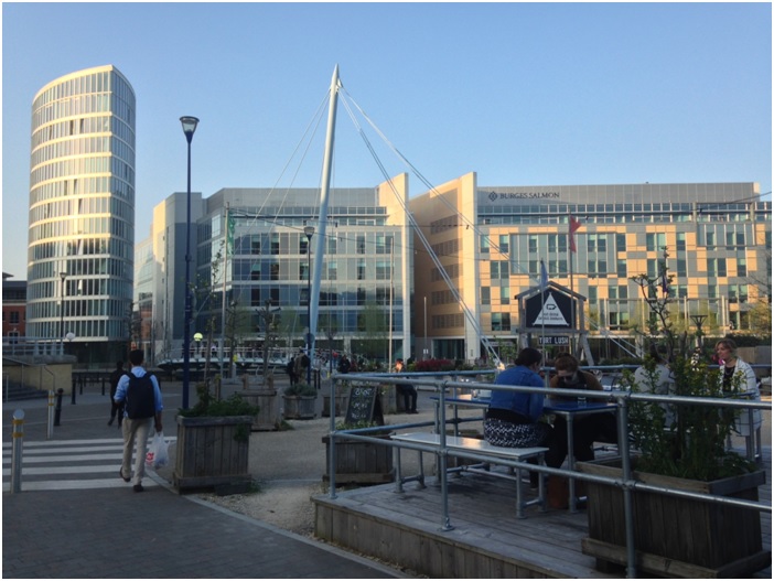 Temple Quay – yeni işyerlerinin olduğu bölüm – arka tarafta da Temple Meads tren istasyonu var.