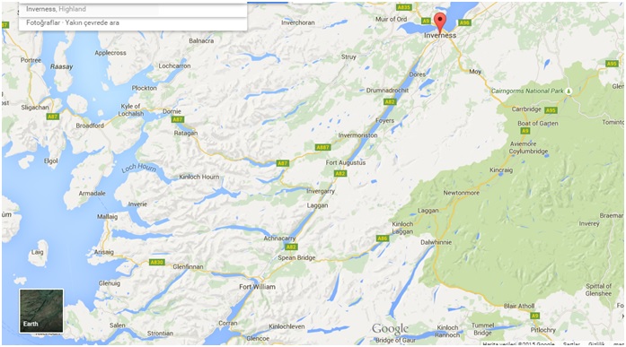 İnverneness ve Highlands bölgesi ilk başta karışık gelebiliyor, ama haritaya detaylı bakınca anlaşılıyor, Inverness içinden geçen River Ness var, o denize dökülüyor. Nehrin diğer ucu da Loch Ness (Ness Gölü) oluyor, Loch Ness’in en alt noktası Fort Augustus kasabası, o kasaba da Loch Ness (uzun ince olan göl Loch Ness) ile Loch Oich arasındaki  nehrin birleşme noktası, ve Fort Augustus kasabasında nehir ile gölü birleştirmek için kanal yapmışlar. Ve civarda bir sürü göl daha var.