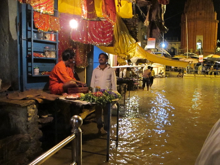 Haridwar'da Ganga aarti törenine hazırlık. Ben de çiçeğimi aldım, törene katılacağım!