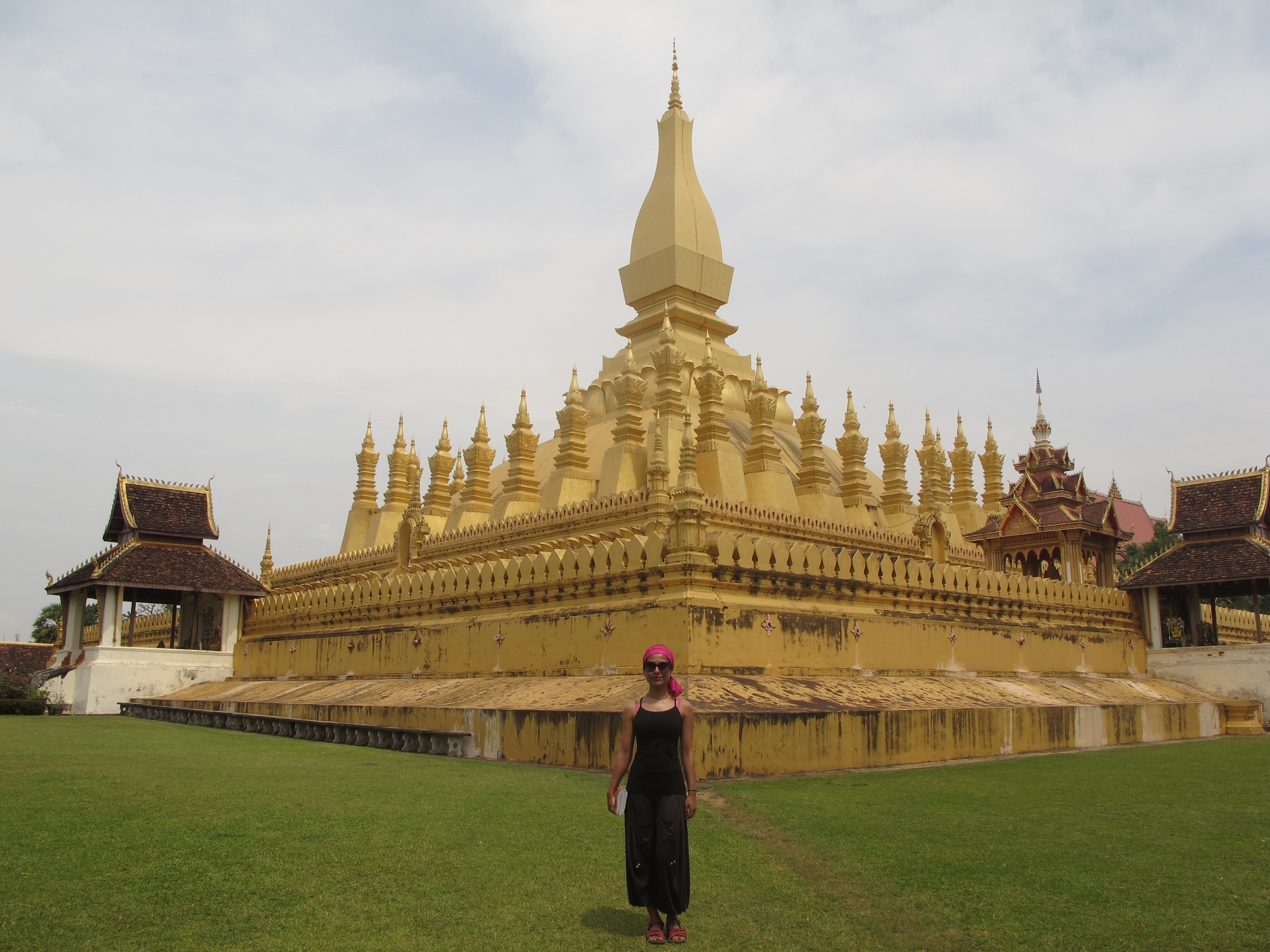 Günün son durağı turistlere özel bir saatlik Vipassana meditasyonu seansları olduğunu duyduğumuz Wat Sok Pa Luang Tapınağı. Büyük, yemyeşil bir alana kurulu bu tapınak ve manastır kompleksinin içinde biraz zor da olsa meditasyonun yapılacağı küçük tapınağı buluyoruz. Yemyeşil agaçların, kuş seslerinin içinde, bahçesinde turuncu kıyafetli keşişlerin dolaştığı bu tapınağın atmosferi ister istemez etkiliyor insanı. Bizden sonra 4-5 turist daha geliyor ve budist bir keşişin eşliğinde bir saatlik sessiz oturma ve yürüme meditasyonu yapıyoruz. Meditasyon faslı bittikten sonra yine aynı tapınak kompleksinin içinde bir masaj ve sauna bölümü olduğunu öğreniyoruz ve arayıp buluyoruz bu biraz gizli saklı bir köşedeki küçük bungalovu. Til bitki saunasını denerken ben de ilk Lao masajımı yaptırıyorum. Thai masajından pek farkı olmayan bir masaj ve en az Thai masajı kadar iyi. Tüm bu Güneydoğu Asya gezisi boyunca bir bu saati 3-4 Euro’luk masajların bir de Durian’ın bağımlısı oldum zaten. Şimdi burnumda tütüyorlar Berlin’de. (Berlin’de bir saatlik bir Thai masajına en az 20-30 Euro ödemek lazım).