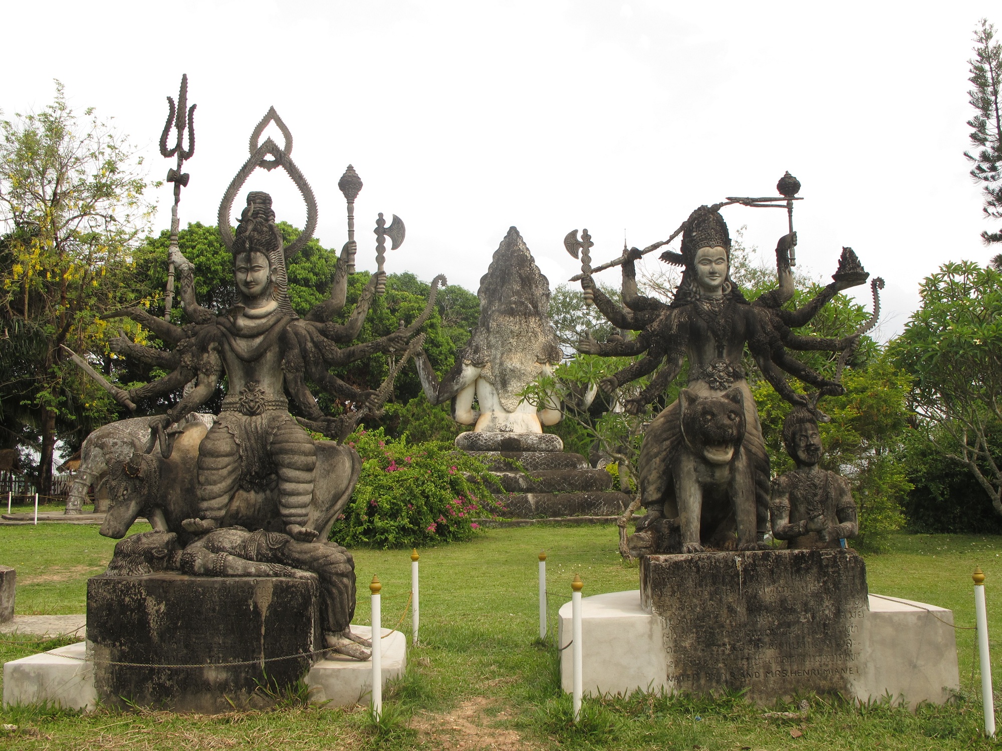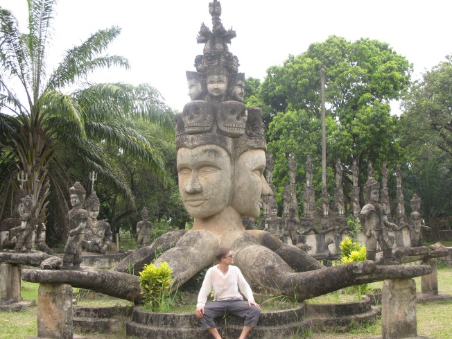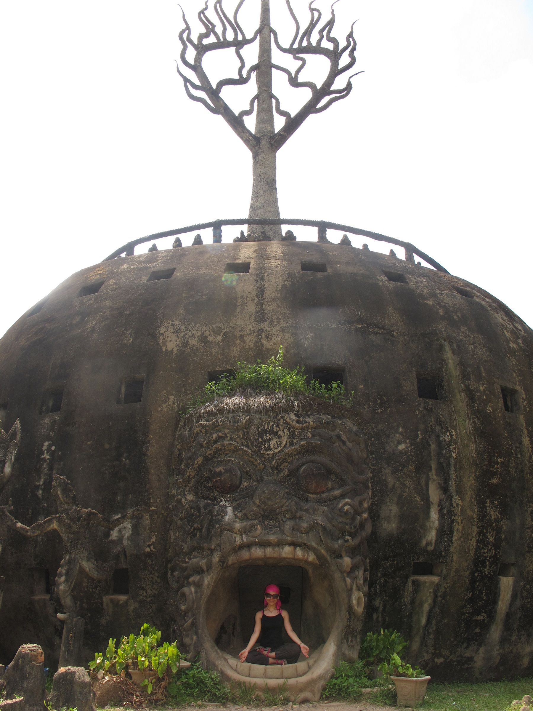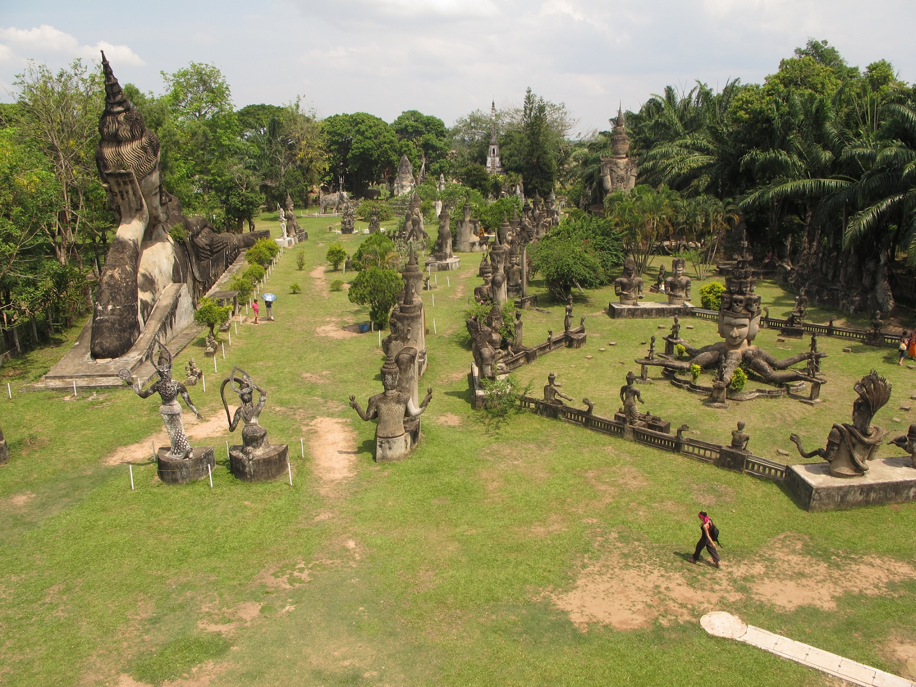 Bir sonraki durağımız olan Buddha Park (Xieng Khuan) Vientiane’in 25km güneydoğusunda bulunuyor. 1958 yılında şaman bir yoginin dizayn edip kurduğu bu park daha önce hiç görmediğim bir tarzdaki Budist ve Hindu heykellerini içinde barındırıyor. Dev heykeller alışık olduğumuz huzur dolu buddhalardan çok farklı. Cennet ve cehennem figürlerinden korkunç yaratıklara, çeşitli Hindu efsanelerinin canlandırmalarına dek pek çok ilginç heykel var burada. Bir de İngilizce’lerini geliştirebilmek amacıyla turistlerle konuşabilmek için buraya gelen bir sürü öğrenci budist keşiş. Bir tanesi de bizim yanımıza gelip bu heykellerin hikayeleriyle ilgili bir şeyler anlatmaya başlıyor, aralarda da biz ona bir budist keşişi adayı olarak günlük hayatını nasıl geçirdiğine dair sorular soruyoruz. Ve öğreniyoruz ki henüz 15-16 yaşlarında olan bu keşiş adayı gündüzleri belli bir saate kadar normal bir okulda öğrenci, sonrasında tapınakta eğitime gidiyor.