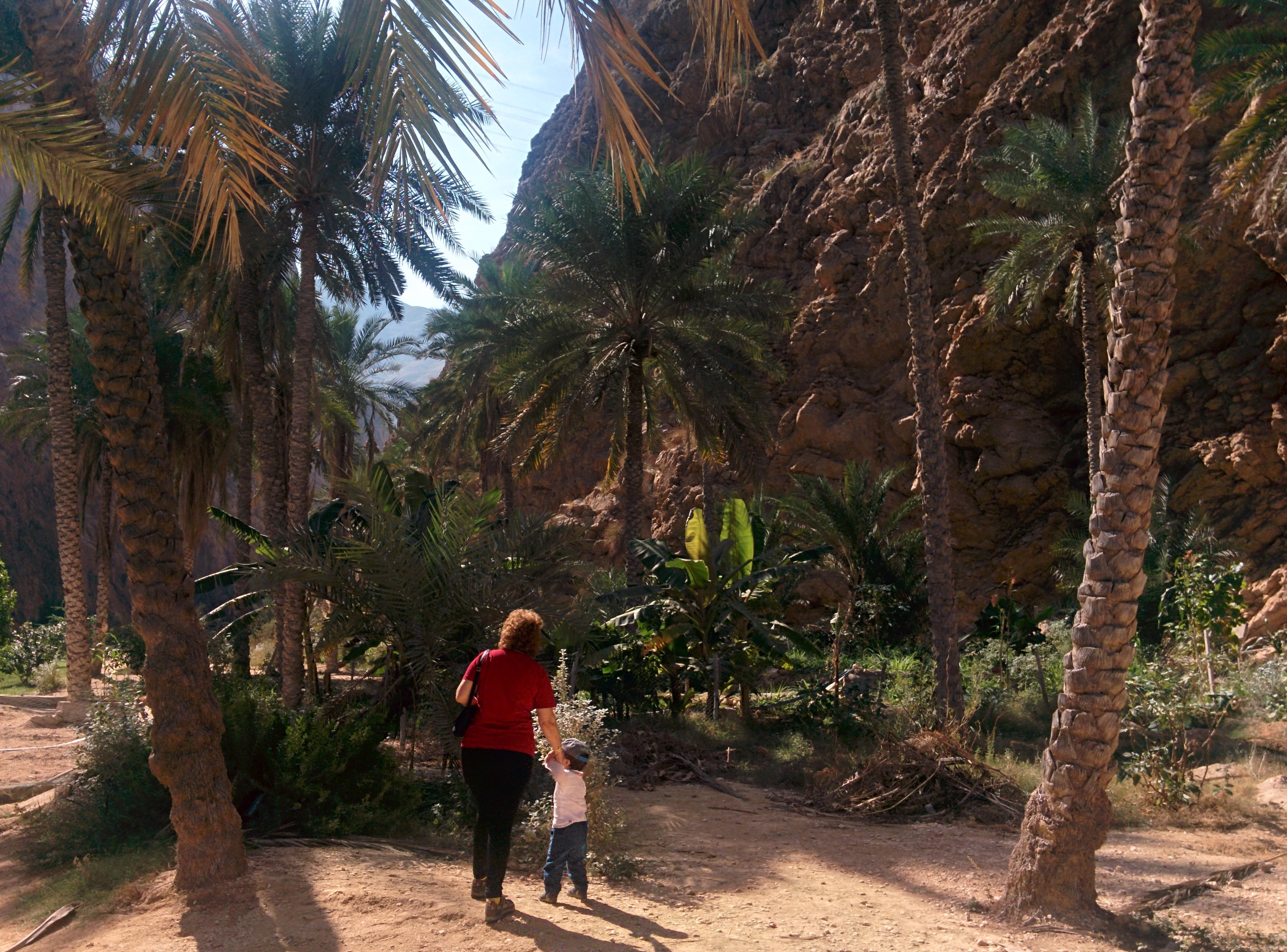 İşte orada, o an gerçekler tüm acısıyla geldi yüzüme bir tokat attı sayın okur. Sen misin, hah ne var küçük çocukla da her yere girer çıkarım, oradan oraya gezerim diye ahkam kesen, al sana. Öğlenin saat 1’inde, 30 küsür derece sıcakta, 14 kilo kadar ve 15 dakikadan fazla yürümeyi reddeden, o 15 dakikada da gidilmesi gereken istikamet hak getire kendi nereye isterse oraya doğru yürüyen bir çocukla pusetsiz başbaşa kalmıştık ve ben ne idüğü belirsiz bir mesafede olan Wadi Shab’ı görmek istiyordum. Hoş, getirmeyi düşünsek bile, yol pusetle gidilebilecek bir yol değildi. Ki kaç km yürünmesi gerektiği, yolun sonrasının nasıl olduğu konusunda da kimsenin kesin bilgisi yoktu!