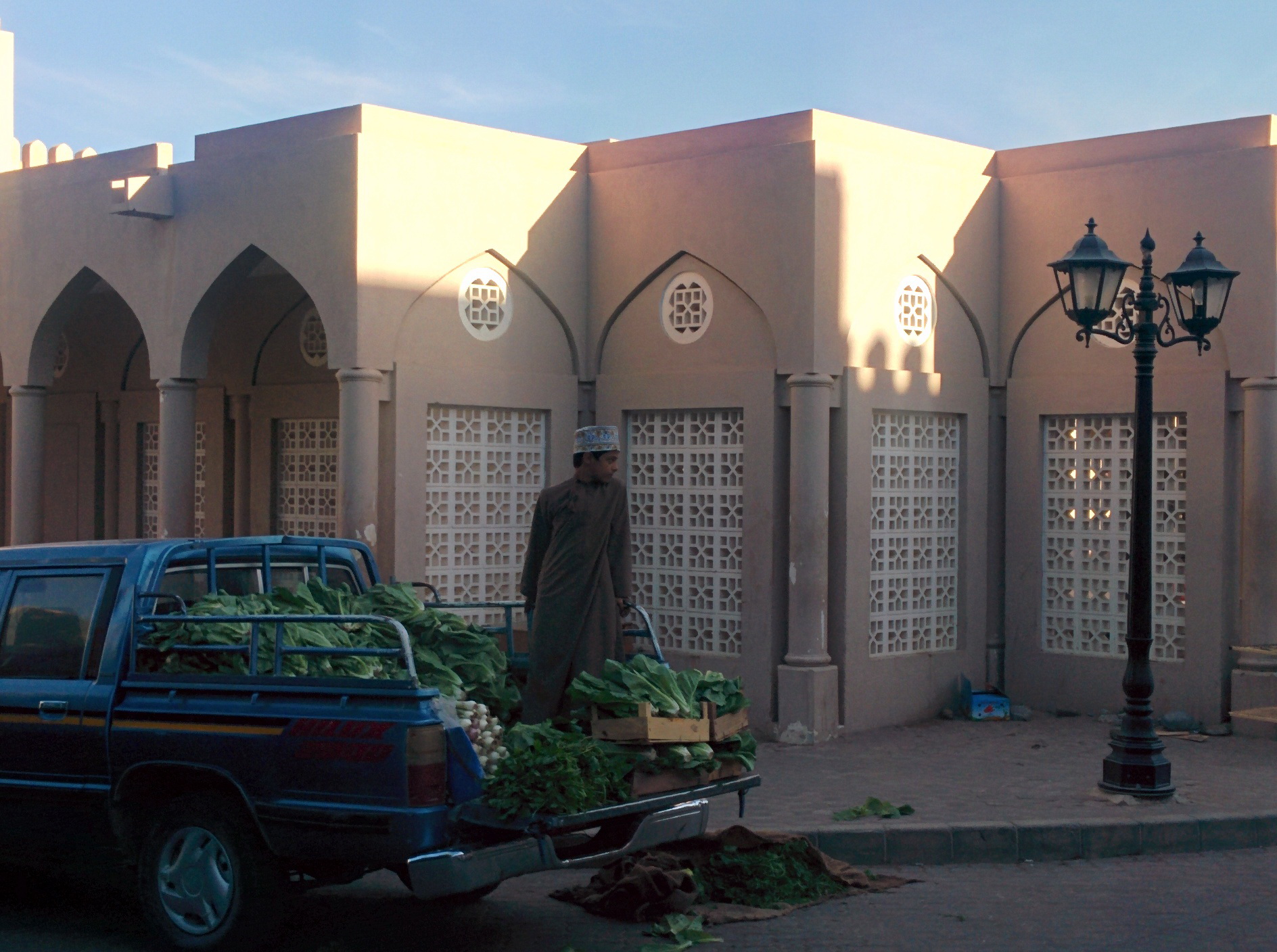 Az gittik uz gittik dere tepe düz gittik Niswa’ya vardık. En azından tabelalar öyle söyledi ama ortada iki market bir benzinlikten başka bir şey yoktu. Bizse eski bir kale içi ve çarşılar arıyoruz. Dön babam dön yok kale içi, bari benzinliğe soralım dedik. Bu arada kırmızı ışıkta bizi biri durdurdu ve ‘İngilizce biliyor musunuz, ben Niswa’yı arıyorum, sanırım siz de arıyorsunuz’ dedi (evet bayağı dolap beygiri gibi dönmüş olmalıyız ortamda). Sırtında çantası Portekiz’den Afrika üstü taaa Umman’a gelebilmiş bu gezgin de kaybolmuştu şuncacık yerde. Onu arabaya aldık, benzinliğe yol sorduk falan derken Niswa’nın eski kaleiçine vardığımızda saat 4 buçuk olmuştu. Tüh be bir şey göremeyeceğiz, geç oldu derken tam da en civcivli zamanda vardığımızı anladık arabadan iner inmez. Cuma namazı molası bitmiş, esnaf dükkanlarını birer ikişer açıyordu. Arabayı park ederken Umman’da ilk defa gördüğüm bir sokak çöp şiş satıcısı dikkatimi çekti. Zerre kadar aç olmamama rağmen sokak yemeklerine zaafım olduğundan, sokak yemekleri satıcılarının her ülkenin kültürünün vazgeçilmez bir parçası olarak desteklenmesi gerektiğine inandığımdan, gittim bir tane aldım. Elvin’e yedirmeye ne olur ne olmaz cesaret edemedim ama annemle ben gayet leziz bulduk çöp şiş dürümü, midemiz de sağ salim atlattı bu badireyi 😉