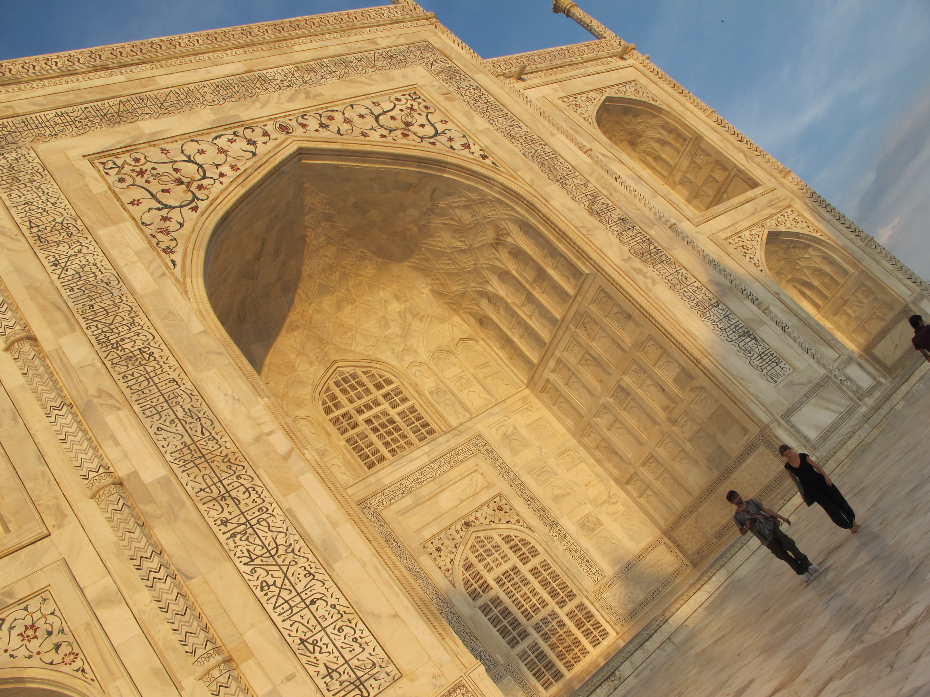 Önce kalacak bir yer bulmak için Tac Mahal civarındaki bir kaç küçük hosteli ziyaret ediyoruz. Dün geceki pahalı otel lüksümüzden sonra, nasıl olsa iyice dinlenmiş olmamıza da güvenerek, gözümüzü karartıp ucuz bir hostel odası kiralıyoruz, tek kriterimiz otelin bir terasının olması. Tac Mahal’in üzerine güneşin doğuşunu izlemek şart, bunu da en güzel kaldığımız otelin terasından yaparız diye düşünüyoruz. Aynı zamanda dayanma sınırımızı deneyeceğiz bu ucuz otel odasıyla, minimum nereye kadar inebiliyoruz otel konforunda bakalım. Çantaları bırakıp, otelin terasında ilk hint çayımızı içip (sütlü ve baharatlı bu tatlı çay yolculuk boyunca favorilerimizden olacak)  Tac Mahal’i uzaktan seyrediyoruz. Güneşin batışını Tac Mahal’in içinde seyretmek çok tavsiye edildiğinden, gün batımına bir kaç saat kala bilet kuyruğuna giriyoruz. Hindistan’da görüp göreceğimiz en pahalı turistik anıt giriş ücreti Tac Mahal’de: 750 Rupi (10 Euro civari). Grubumuzdaki Hintli arkadaşın, Hintliymiş gibi davranıp lokal turist bileti  satın almam konusundaki tavsiyelerine kulak asmadan turist biletimi alip içeri giriyorum. (Hintliler için fiyat 10 Rupi civarı, sırf  Türkiye’de değilmiş yani bu turiste kat kat pahalı bilet satma uygulaması)