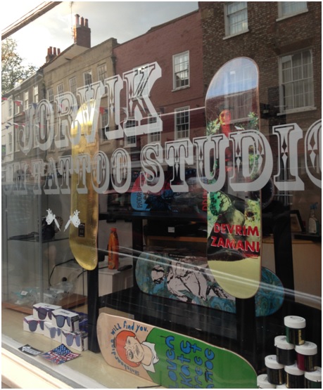 Sokakların birinde gördüğümüz dövme stüdyosu, ve camında devrim zamanı..