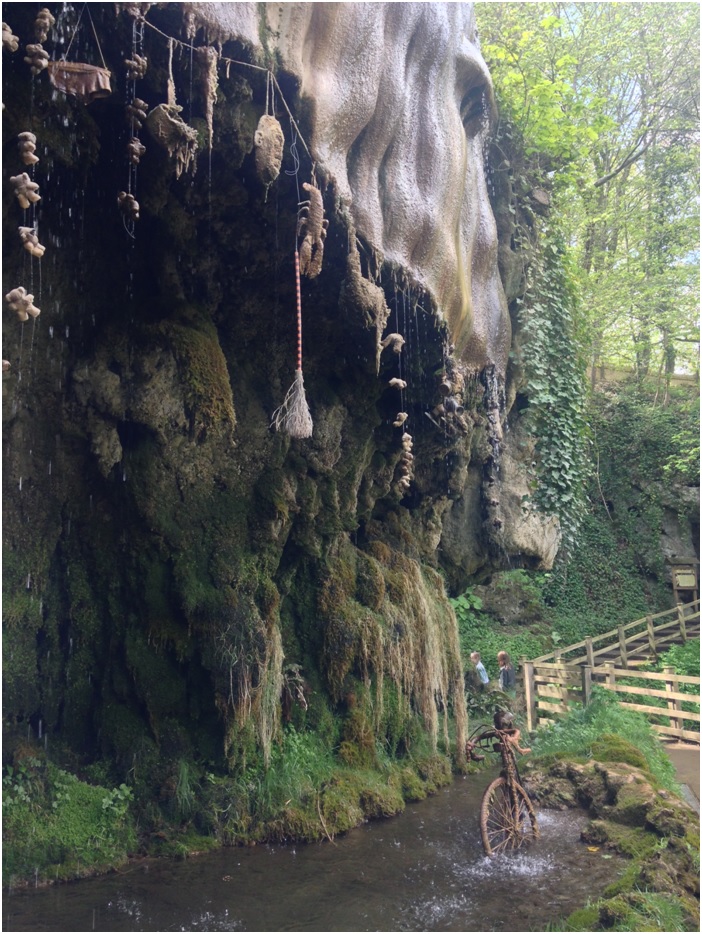 Köprünün öbür tarafına geçtiğinizde de Mother Shipton Mağarasına girebilirsiniz, yine kişi başı 6 pound. Biz ilk başta anlamadık, upuzun bir mağara var içinde yürüyoruz sandık, oysa ki nehrin öbür tarafında açık havada yürüdük aslında, yolun sonuna kadar, güzel bir park gibi bir yer yapmışlar, ve mağara giriş ücretini ödemeden giremiyorsunuz, 1-2 km kadar yürüyorsunuz yolun sonuna kadar, yolda sağlı sollu ağaçlardan yaptıkları heykeller vs var. Yolun sonunda da “Petrifying Well” dedikleri yer ve mağara var. Şimdi tamam park çok güzel, Petrifying Well kısmını da ben ingilizce türkçe çeviride kaçırdım, çok korkutucu bir kuyu var, işte biz dibine ineceğiz, ordan yukarı bakacağız falan sandım, oysa ki burasıymış: